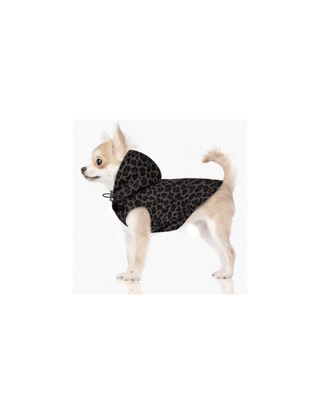 Impermeabile traspirante, con passaggio per guinzaglio e cappuccio, stampa esclusiva Milk&Pepper. Chiusura regolabile.