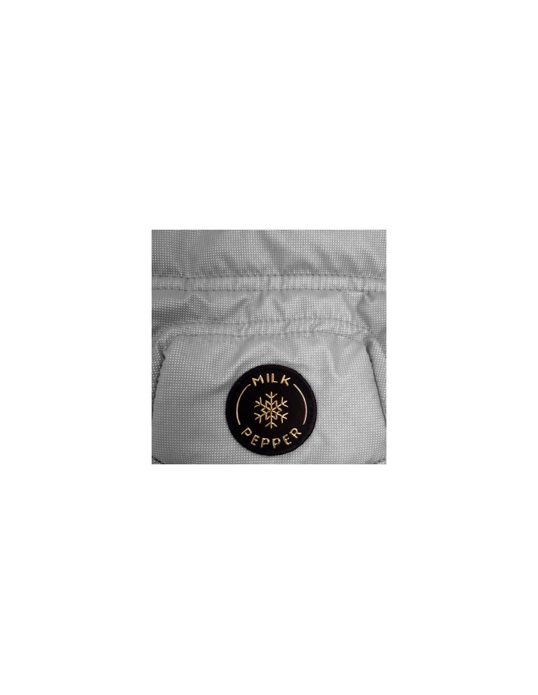 Piumino in poliestere grigio perla con sovrastampa a micropuntini tono su tono (trattamento idrorepellente)