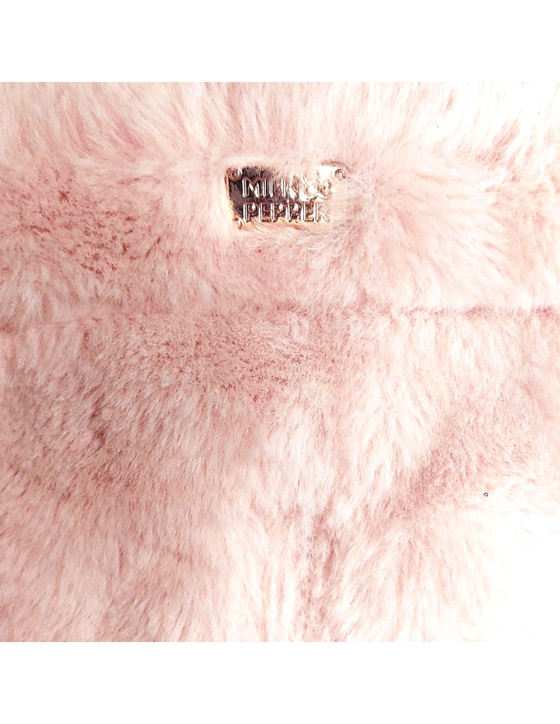 Lato uno: pelliccia fantasia rosa cipria - lato due: poliestere trapuntato grigio antracite (idrorepellente)