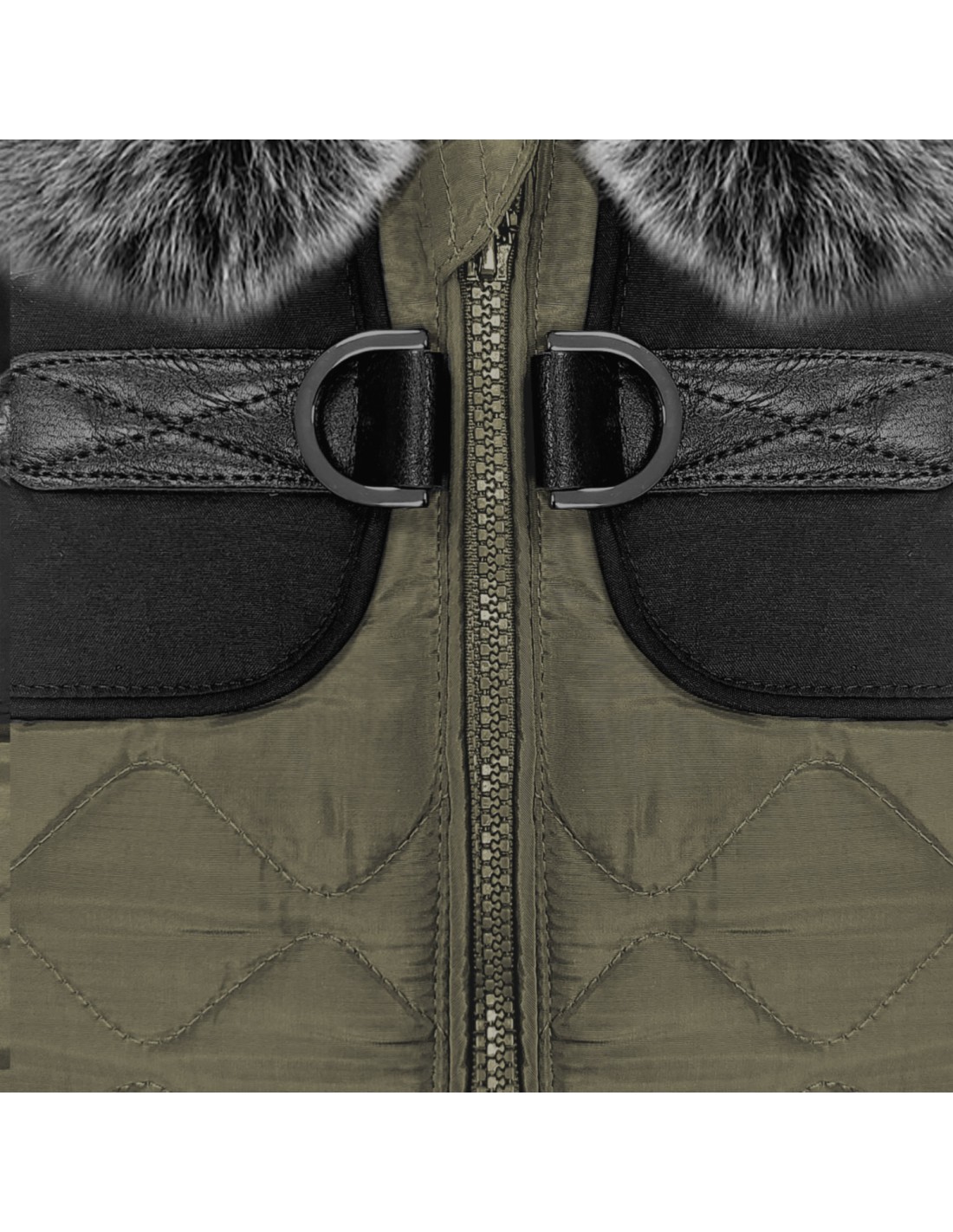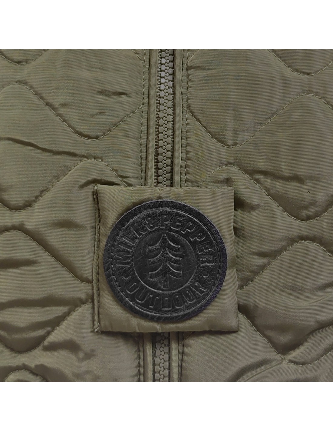Giacca-pettorina in poliestere trapuntato kaki con trattamento idrorepellente