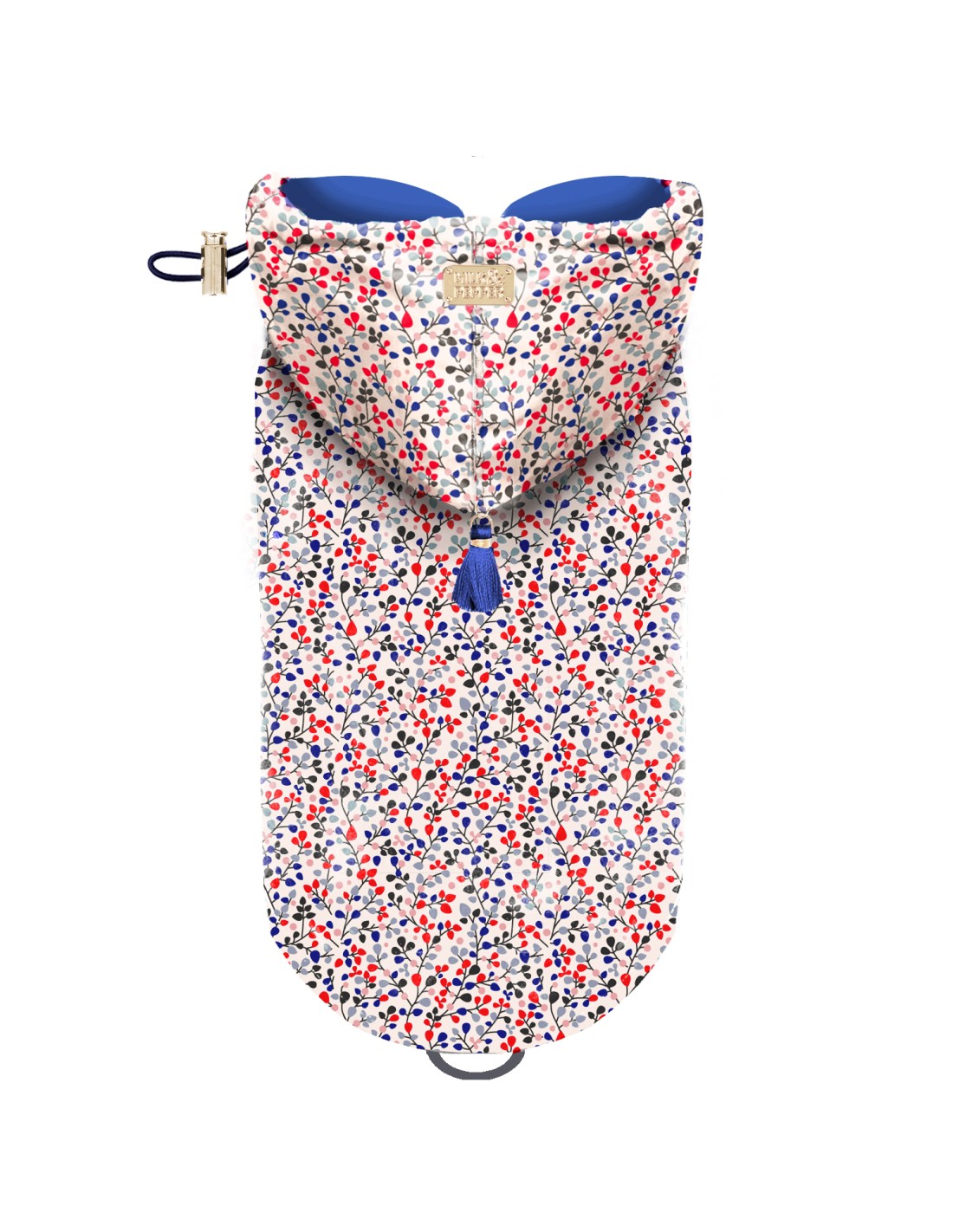Materiale impermeabile rosa cipria con esclusiva stampa “foliage” multicolore
