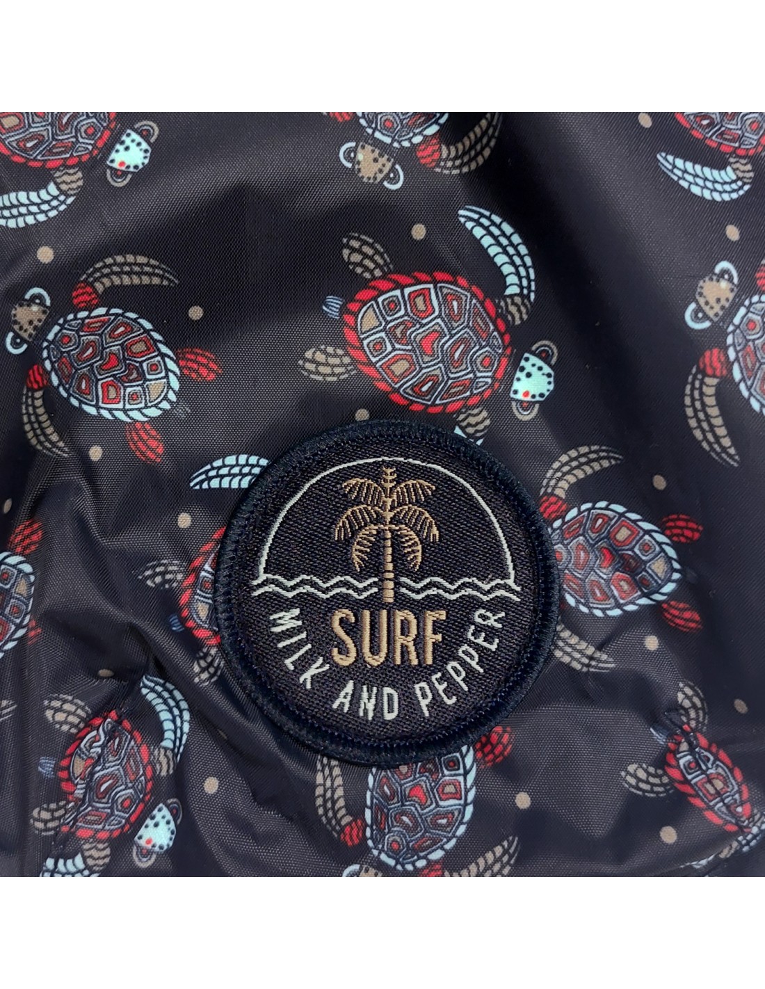 Materiale impermeabile blu navy con esclusiva stampa “tartaruga” multicolore