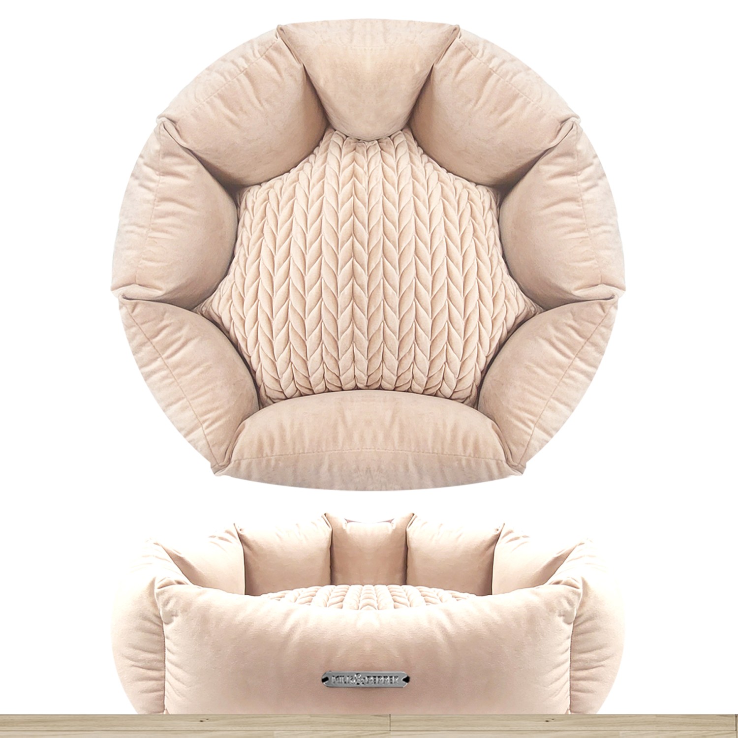 Divano Shell color rosa cipria, strutturato con impunture