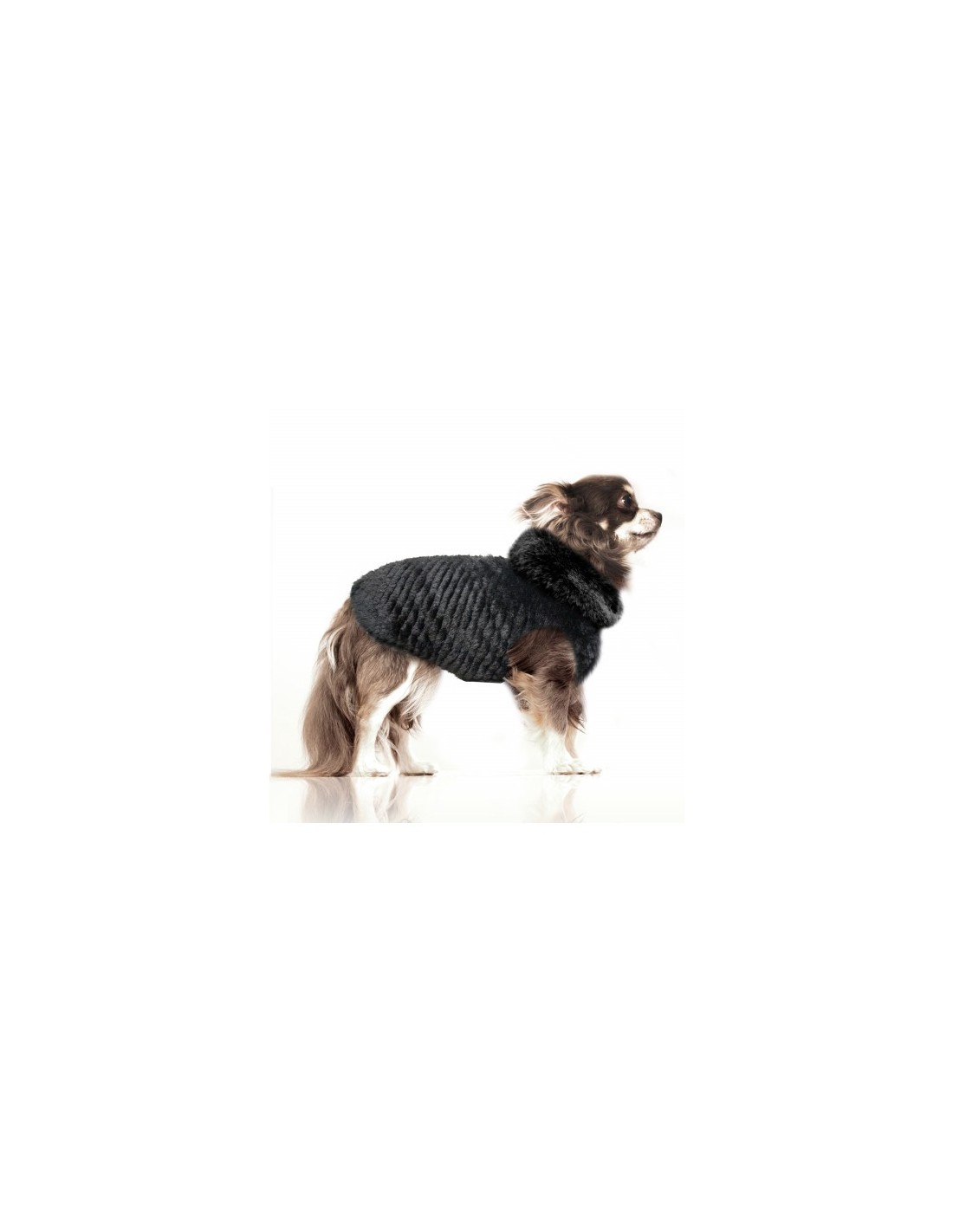 Felpa nera con cappuccio in morbida pelliccia fantasia a spina di pesce