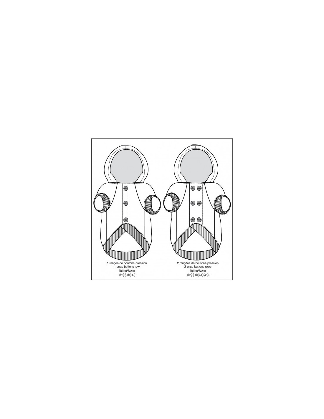 Fila singola di bottoni dalla taglia 23 alla 32