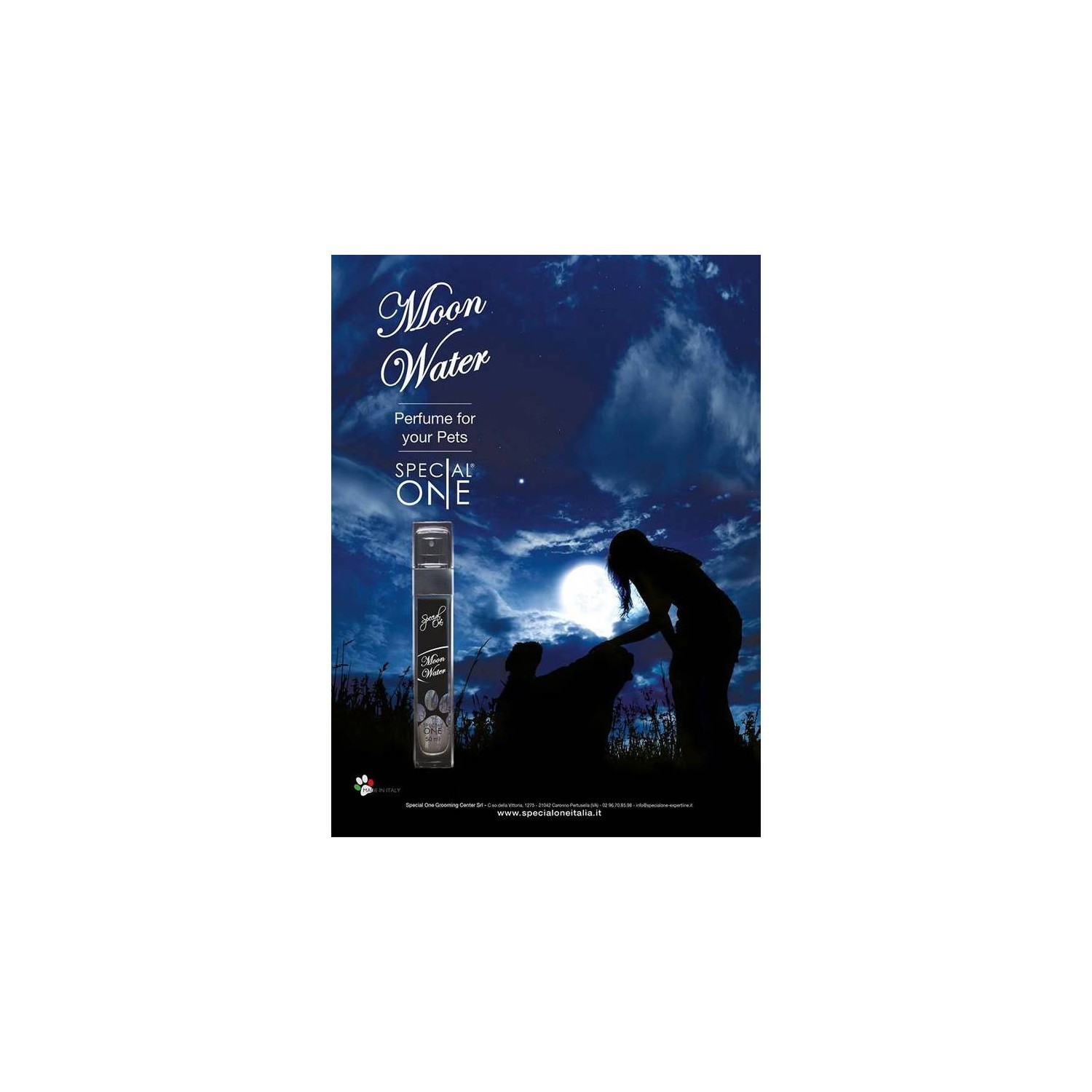 Moon Water per i mood più ricercati. Se il vostro cane passeggia simulando una sfilata sul red carpet o ha un portamento da far invidia agli special guest della fashion week, ecco che Moon Water potrà aiutarlo ad effondere maggiormente il proprio irresistibile stile! Si tratta di una fragranza ̶ particolarmente indicata per levrieri, golden retriever, setter – che al primo impatto offre una combinazione raffinata di Cocomero, Ylang Ylang e Magnolia, che delicatamente lascia il posto a nuance orientali, decise, sensuali e avvolgenti a base di Rosa turca, Geranio d’Egitto e Gelsomino. Infine, le note di fondo offrono una strepitosa combinazione tra la potenza del Muschio Bianco, la freschezza di note marine e un leggero tocco gourmet del Fiore di Eliotropo.