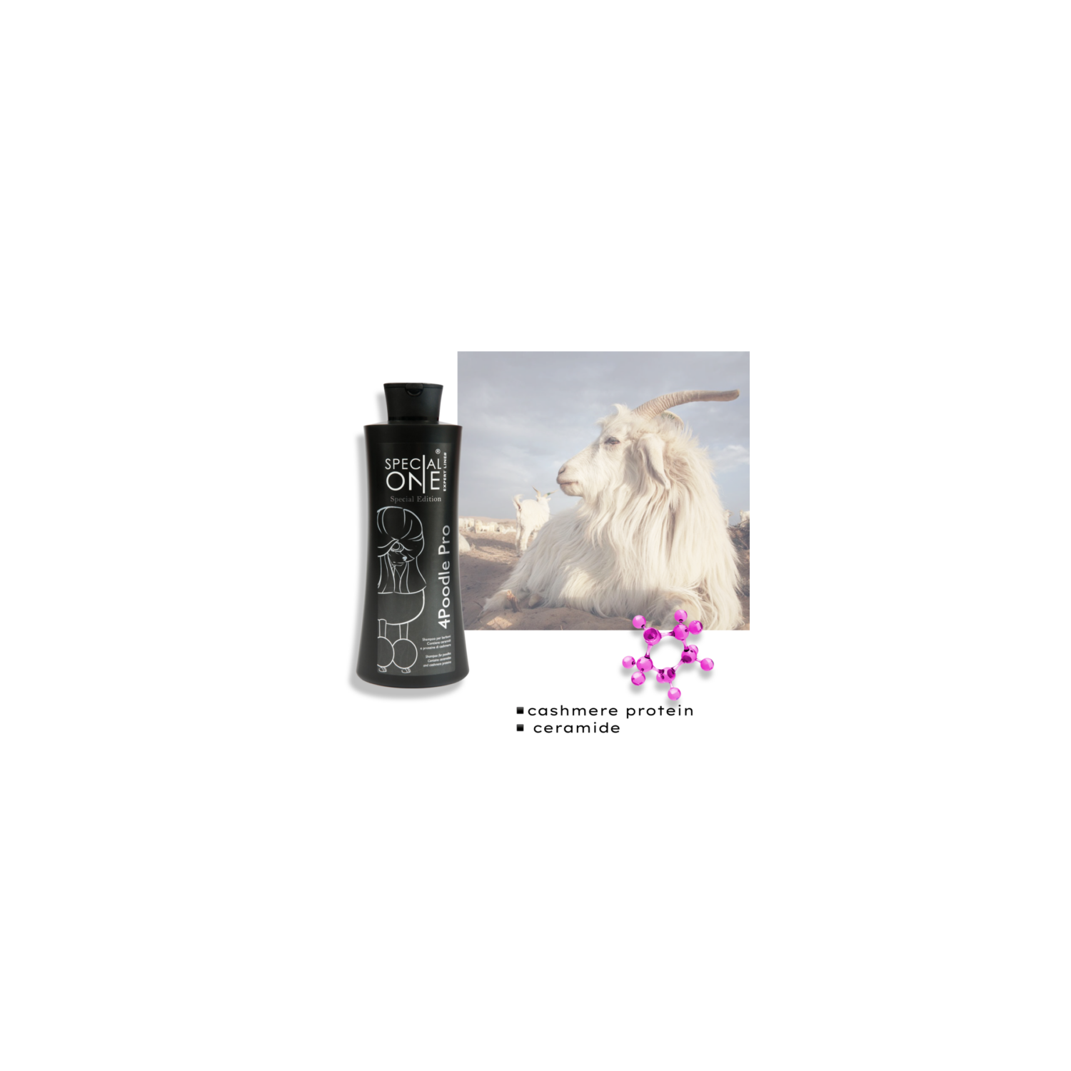 La formula di 4 Poodle Pro contiene ceramidi e proteine di cashmere. Le molecole dei ceramidi ricostruiscono il pelo dall’interno e lo lasciano idratato, luminoso e facile da pettinare, mentre le proteine di cashmere regalano al manto compattezza ed elasticità.